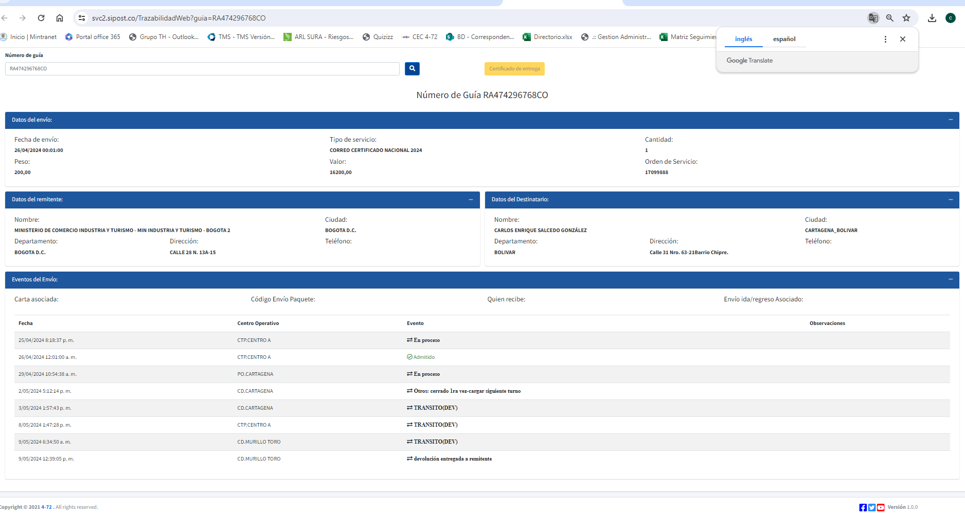 MINISTERIO DE COMERCIO, INDUSTRIA Y TURISMO, NIT 830.115.297-6, código de portafolio