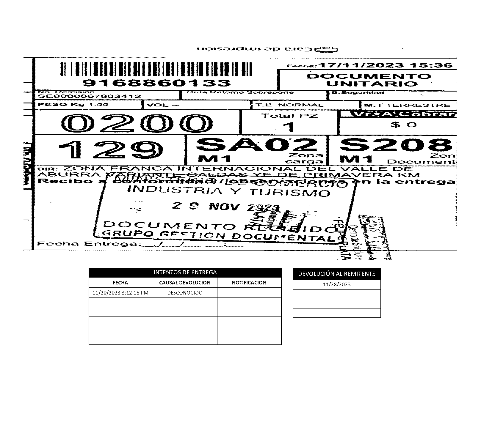 Notificación del Oficio No. 2-2023-030968, junto con los soportes de envío al correo electrónico y a la dirección de notificación judicial, registrados en el certificado de existencia y representación legal, dirigido por el Director de Productividad y Competitividad, al señor Orlando Navas Mahecha en su condición de gerente de la sociedad Click ZF S.A.S., mediante el cual se solicita la acreditación del cumplimiento de las obligaciones y/o requisitos con la Zona Franca Internacional del Valle de Aburrá - ZOFIVA. 10 de diciembre de 2023