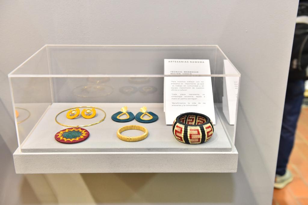 En la exposición, los visitantes encontrarán prendas de vestir en técnicas como tejido a dos agujas, algodón encerado, macramé, incrustación de chaquira en hilo natural penca y telar, así como bolsos y sombreros tejidos en caña flecha, cestería, tagua e iraca. En cuanto a la joyería, se encuentran werregue, filigrana y artesanía urbana, entre otras.