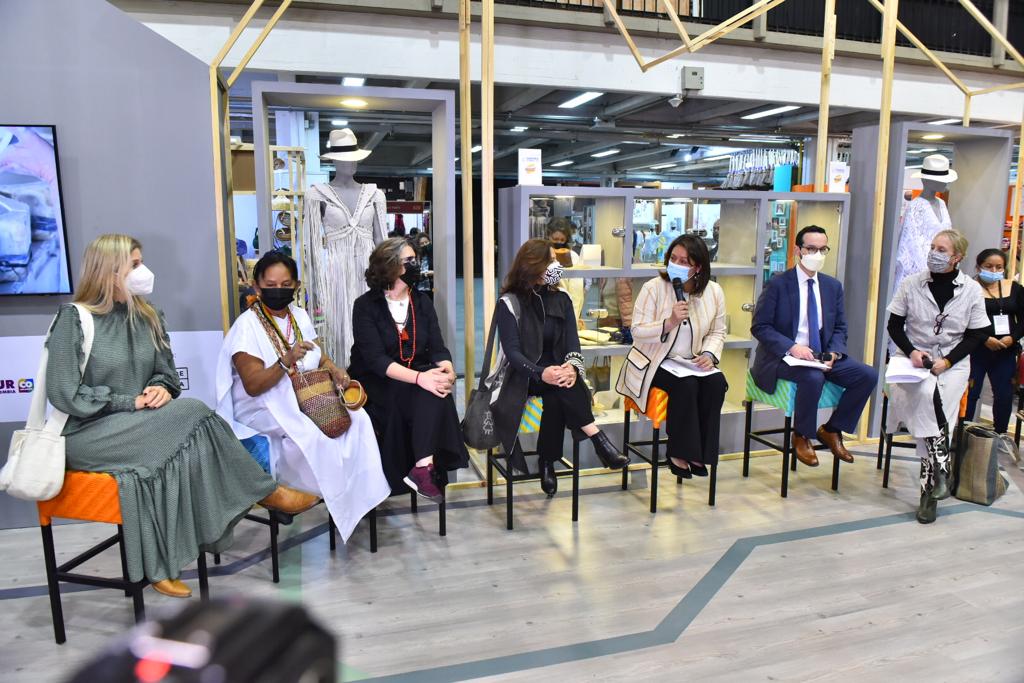 “Hoy vemos cómo estas técnicas se conectan a través de las manos, creando nuevas propuestas, nuevas visiones que resaltan lo mejor de nuestra cultura y tradiciones. Un tejido de talentos, de personas que combinan historias, saberes, estilos y creatividad”, explicó María Luisa Ortiz, diseñadora y cofundadora de Vístete de Colombia.
