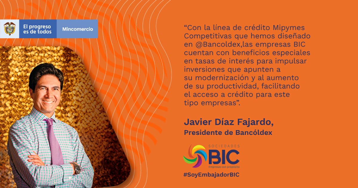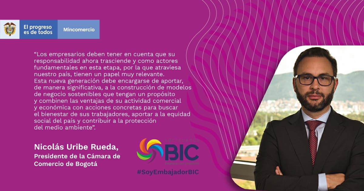 Industria12 de noviembre de 2020 Embajadores BIC, líderes comprometidos con el impulso a las empresas sostenibles Pie de foto: Las empresas BIC, además de generar valor económico, también están comprometidas con temas sociales y ambientales. Un grupo de dirigentes de distintos sectores se encargará de dar a conocer la importancia e impacto que tiene para el país la existencia de las empresas BIC o Sociedades Comerciales de Beneficio e Interés Colectivo. Colombia cuenta ya con 356 compañías BIC, que están generando bienestar y valor compartido para sus trabajadores, proveedores, comunidades, consumidores y el medio ambiente. Este modelo de organizaciones contribuirá a jalonar la reactivación económica del país. El ministro de Comercio, Industria y Turismo, José Manuel Restrepo, lanzó hoy la nueva figura de Embajadores BIC, un grupo de destacados líderes de diferentes sectores que se encargará de difundir la importancia e impacto que tiene para el país la existencia de las empresas BIC o Sociedades Comerciales de Beneficio e Interés Colectivo. Según el jefe de la cartera de Comercio, ahora más que nunca es urgente articular esfuerzos entre todos los actores comprometidos con el desarrollo sostenible y jalonar la reactivación económica del país y el modelo de Sociedades BIC responde precisamente a estos objetivos. Por ahora serán designados 15 Embajadores BIC, líderes que el país reconoce por sus esfuerzos y manifestaciones contundentes en favor de la sostenibilidad. “El Embajador BIC será un promotor de la figura de Sociedades BIC, porque comparte su propósito y ve en esta nueva generación de empresas la oportunidad histórica de lograr una nueva economía”, explicó el Ministro. Agregó que los Embajadores de este tipo de organizaciones, innovadoras y competitivas, ayudarán a gestionar articulaciones y beneficios para que esta nueva generación de empresas siga creciendo como una verdadera comunidad de cambio. Así mismo, expresó que es gratificante manifestar que cada día se suman más compañías a este denominado ecosistema BIC. Es así como hoy Colombia cuenta con 356 empresas BIC, distribuidas a lo largo y ancho de todo el país y que están generando bienestar y valor compartido para sus trabajadores, proveedores, comunidades, consumidores y el medio ambiente. Igualmente, es importante destacar que más del 90% de estas sociedades son mipymes que pertenecen a diferentes sectores y actividades económicas. Contexto Las empresas BIC o Sociedades Comerciales de Beneficio e Interés Colectivo son aquellas organizaciones colombianas configuradas como sociedades de naturaleza comercial, que voluntariamente se proponen combinar las ventajas de su actividad comercial y económica con acciones concretas para propender por el bienestar de sus trabajadores, aportar a la equidad social del país y contribuir a la protección del medio ambiente. Se trata de empresas que, además de generar valor económico, también están comprometidas con temas sociales y ambientales, realizando acciones concretas en cinco dimensiones de la sostenibilidad: modelo de negocio, gobierno corporativo, prácticas laborales, ambientales y con la comunidad. Embajadores BIC Galería Clasificado por : Nombre Fecha Tamaño Mostrando 1-12 de 15 imágenes | 12 |