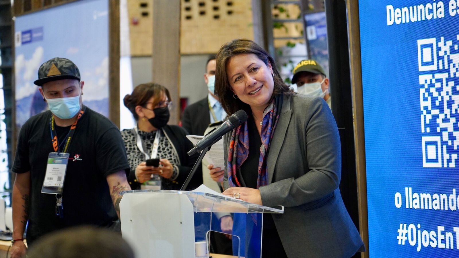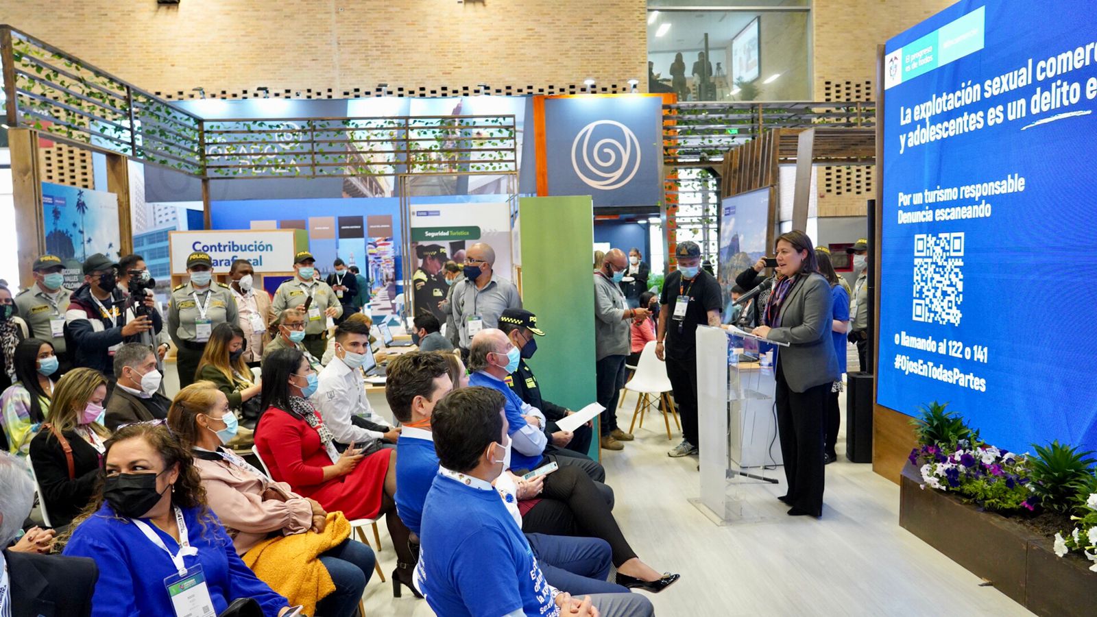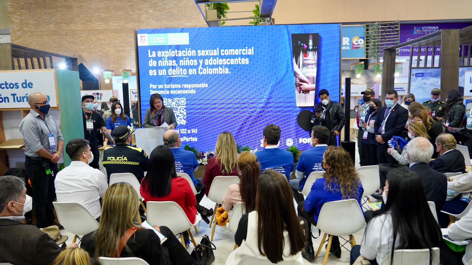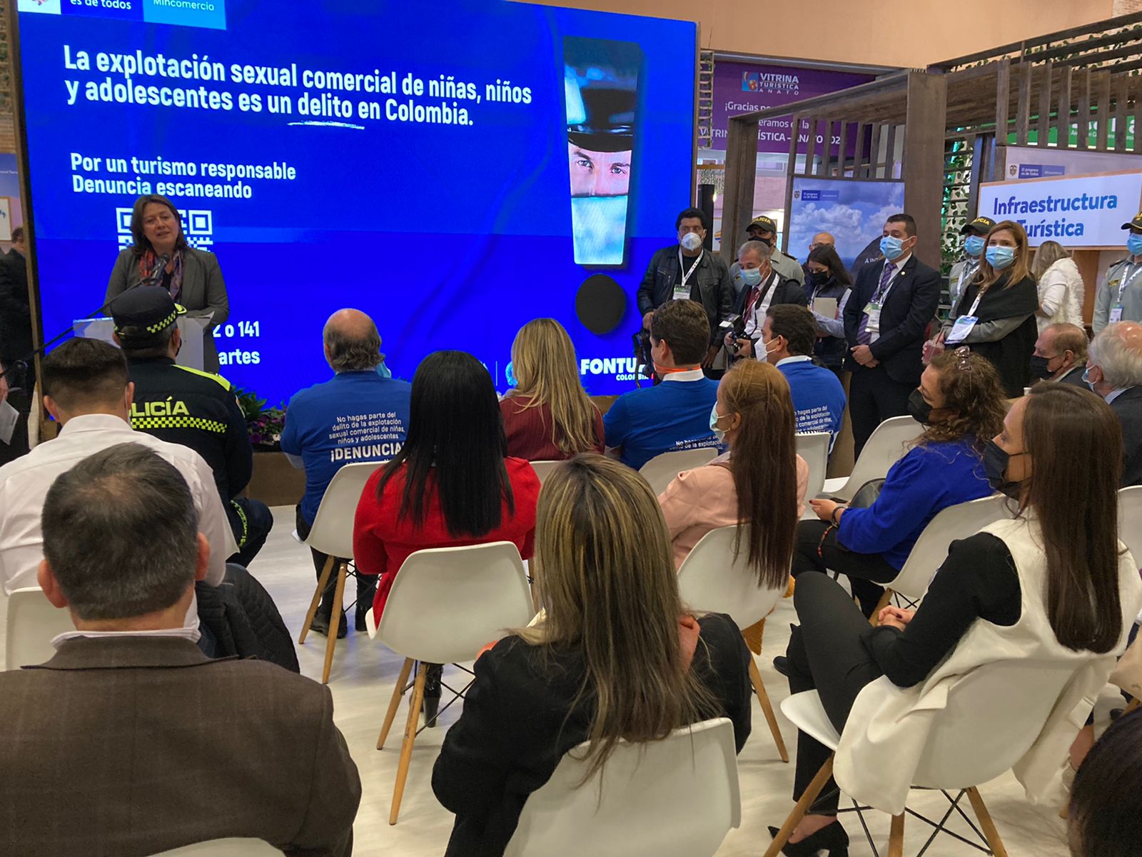 Durante esta actividad, que se cumplió en el marco de la Vitrina Turística de Anato, la ministra María Ximena Lombana Villalba invitó a los turistas y a todos los prestadores de servicios del sector a unirse en esta causa para promover la denuncia de este delito y desnaturalizarlo.