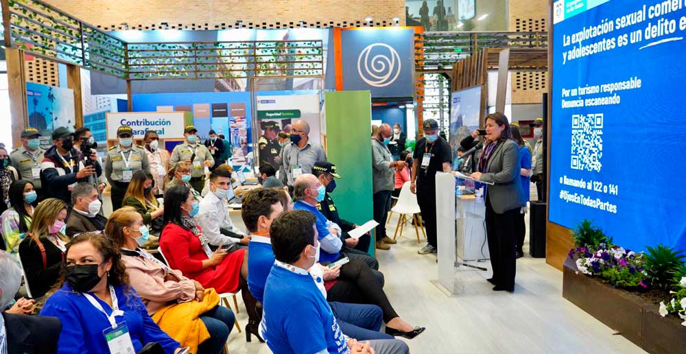 Durante esta actividad, que se cumplió en el marco de la Vitrina Turística de Anato, la ministra María Ximena Lombana Villalba invitó a los turistas y a todos los prestadores de servicios del sector a unirse en esta causa para promover la denuncia de este delito y desnaturalizarlo.