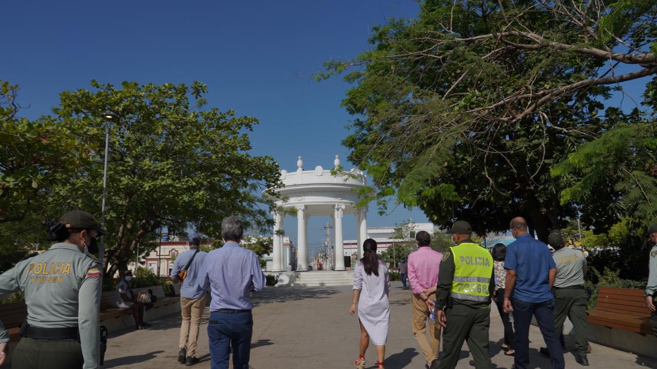 Durante su visita a este municipio del Magdalena, el ministro José Manuel Restrepo y la presidente de Fontur, Raquel Garavito, recorrieron las obras de remodelación de la plaza central de Ciénaga.